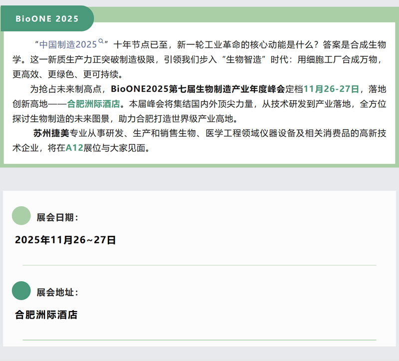 捷美/精骐有约:BioONE2025第七届生物制造产业年度峰会