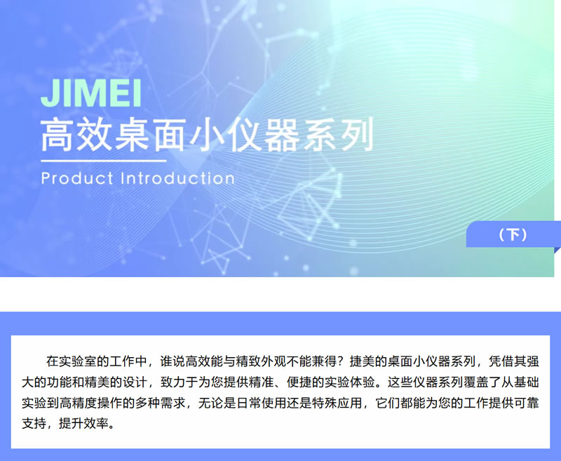 捷美的桌面小仪器系列,凭借其强大的功能和精美的设计,致力于为您提供精准、便捷的实验体验。